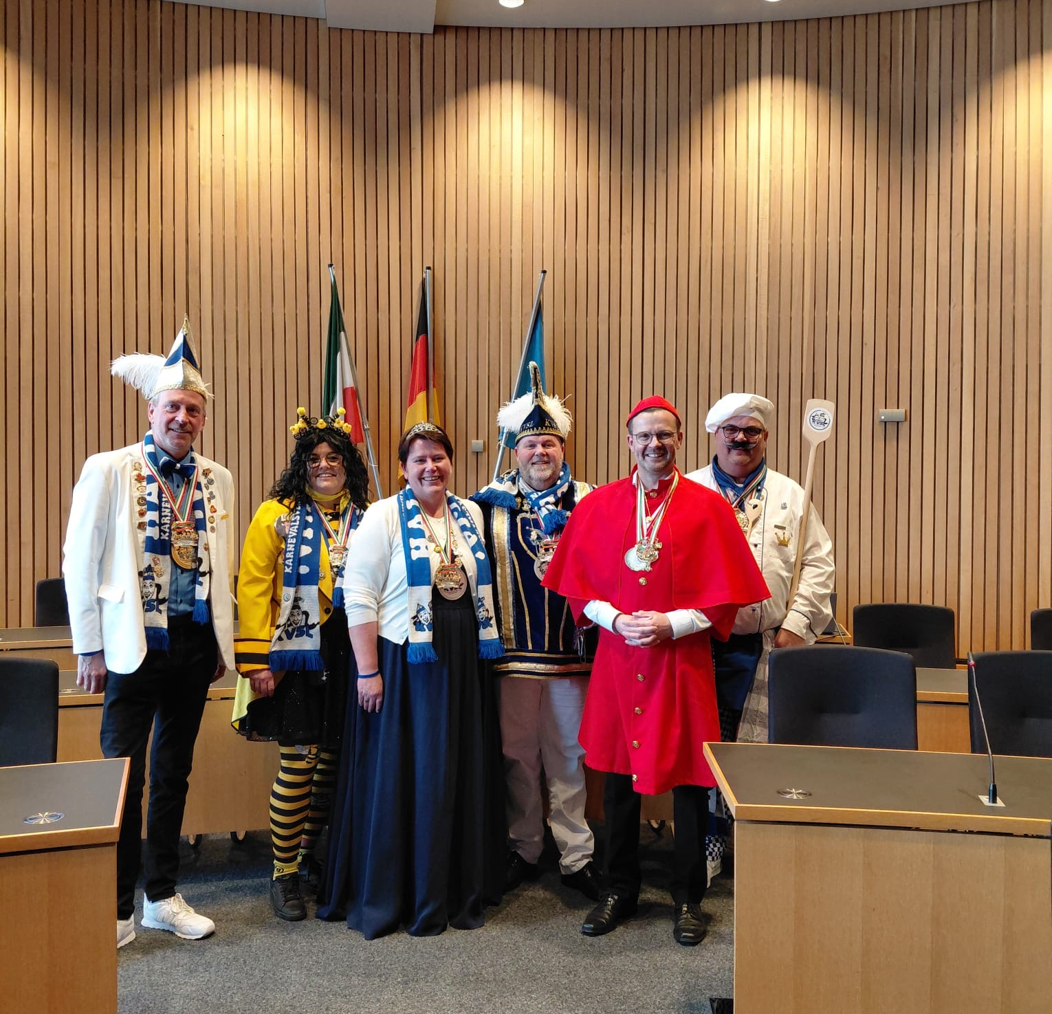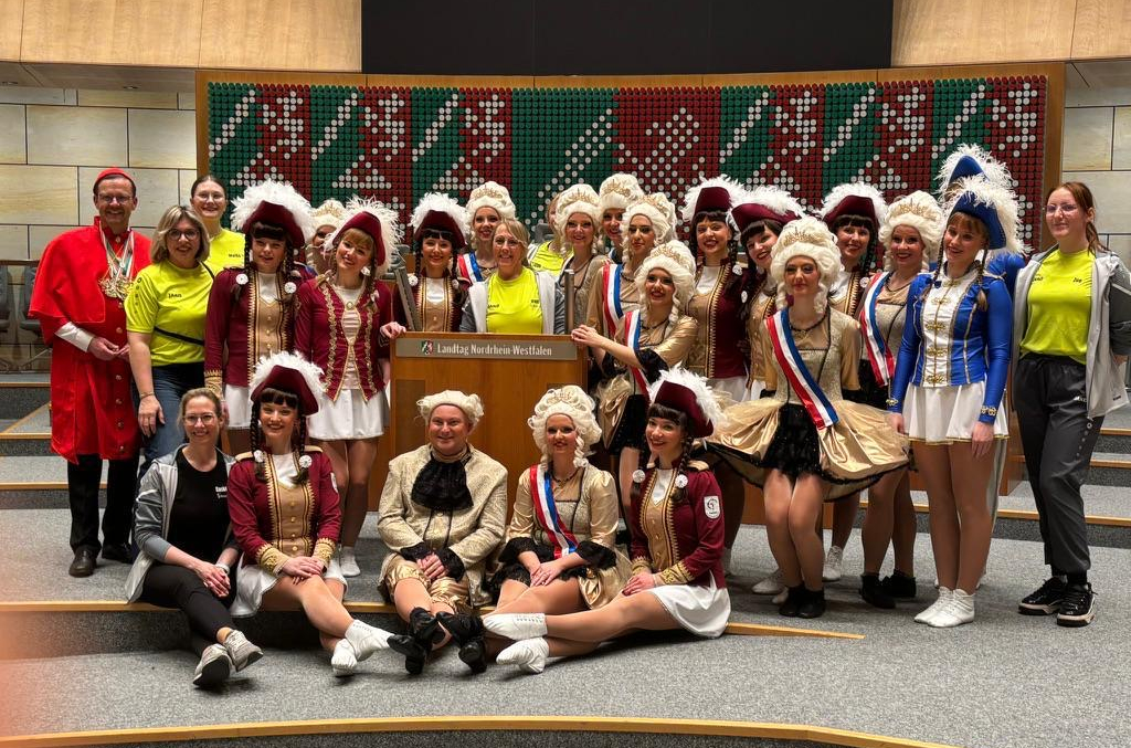 Der heimische CDU-Abgeordnete Raphael Tigges hat in diesem Jahr, im Kostüm eines Kardinals, die Würdenträger des Harsewinkeler Karnevalsvereins St. Lucia und die Tanzsportgarde der Karnevalsgesellschaft Roten Funken Harsewinkel im Landtag begrüßt. Vom Karnevalsverein St. Lucia gaben sich Prinz Markus II und ihre Lieblichkeit Prinzessin Katja II Scharmann mit Gefolge die Ehre. Von der Karnevalsgesellschaft Rote Funken Harsewinkel waren der Vorsitzende Stefan Meyer-Wilmes und Trainerin Daniela Schafarik angereist. Die gut gelaunten Tollitäten machten im Landtag eindrucksvoll deutlich, dass Harsewinkel zu den Karnevalshochburgen Ostwestfalens zählt. Dabei hatte die Tanzsportgarde eine besondere Rolle: Sie gab beim Abendprogramm des Närrischen Landtags eine mitreißende Tanzvorführung.